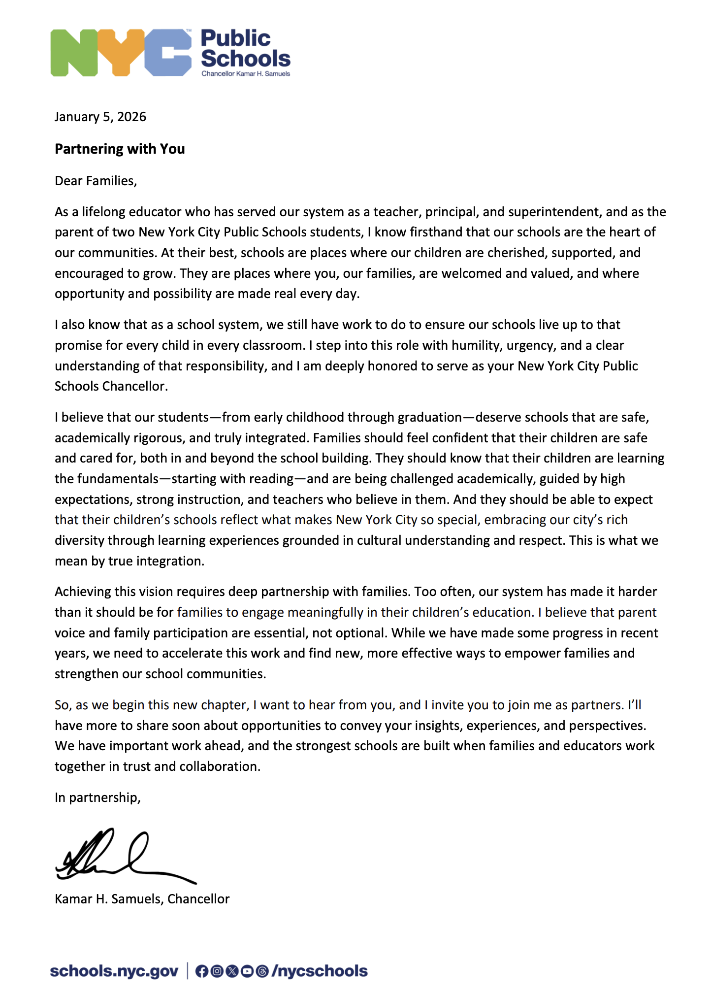 Message from New Chancellor KSamuels